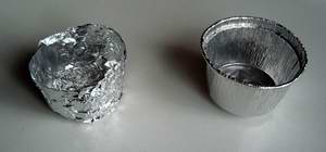 Un pequeño recipiente de aluminio de los que se utilizan para hornear postres o para hacer flanes. Si no lo tienes a mano, puedes fabricarte uno con papel de aluminio tomando como molde la parte de abajo de un vaso.
