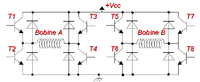 Motores paso a paso Bipolares: Estos tienen generalmente 4 cables de salida. Necesitan ciertos trucos para ser controlados debido a que requieren del cambio de dirección de flujo de corriente a través de las bobinas en la secuencia apropiada para realizar un movimiento.
