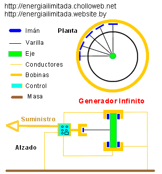 Este sencillo y barato generador infinito de energía eléctrica, puede ser sometido a varios tipos de diseño. Lo mas caro del sistema, tal vez sea su aislamiento de la atmósfera, para trabajar en el vacío. Si no se realiza el vació. El sistema, de poca resistencia, y no rotado a demasiada velocidad, podría aún tener una ganancia positiva de energía. Por otra parte, la turbulencia que genera el rotor, puede servirnos para disminuir el peso que descasa sobre el borde inferior del eje. Aunque en caso de realizar el vacío, el rotor deberá de girar siempre a la misma velocidad, para evitar que se doble en demasía el rotor, o impacte contra las bobinas con asiduidad.