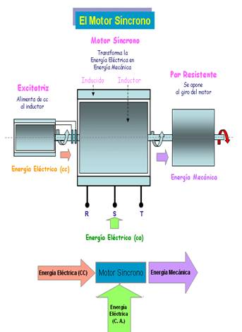Una máquina sincrónica es una máquina de corriente alterna cuya velocidad bajo condiciones de estado estable es proporcional a la frecuencia de la corriente en su armadura. El campo magnético que crean las corrientes de armadura gira a la misma velocidad que el que crea la corriente del campo en el rotor (que gira a la velocidad sincrónica), y se produce un par estacionario.